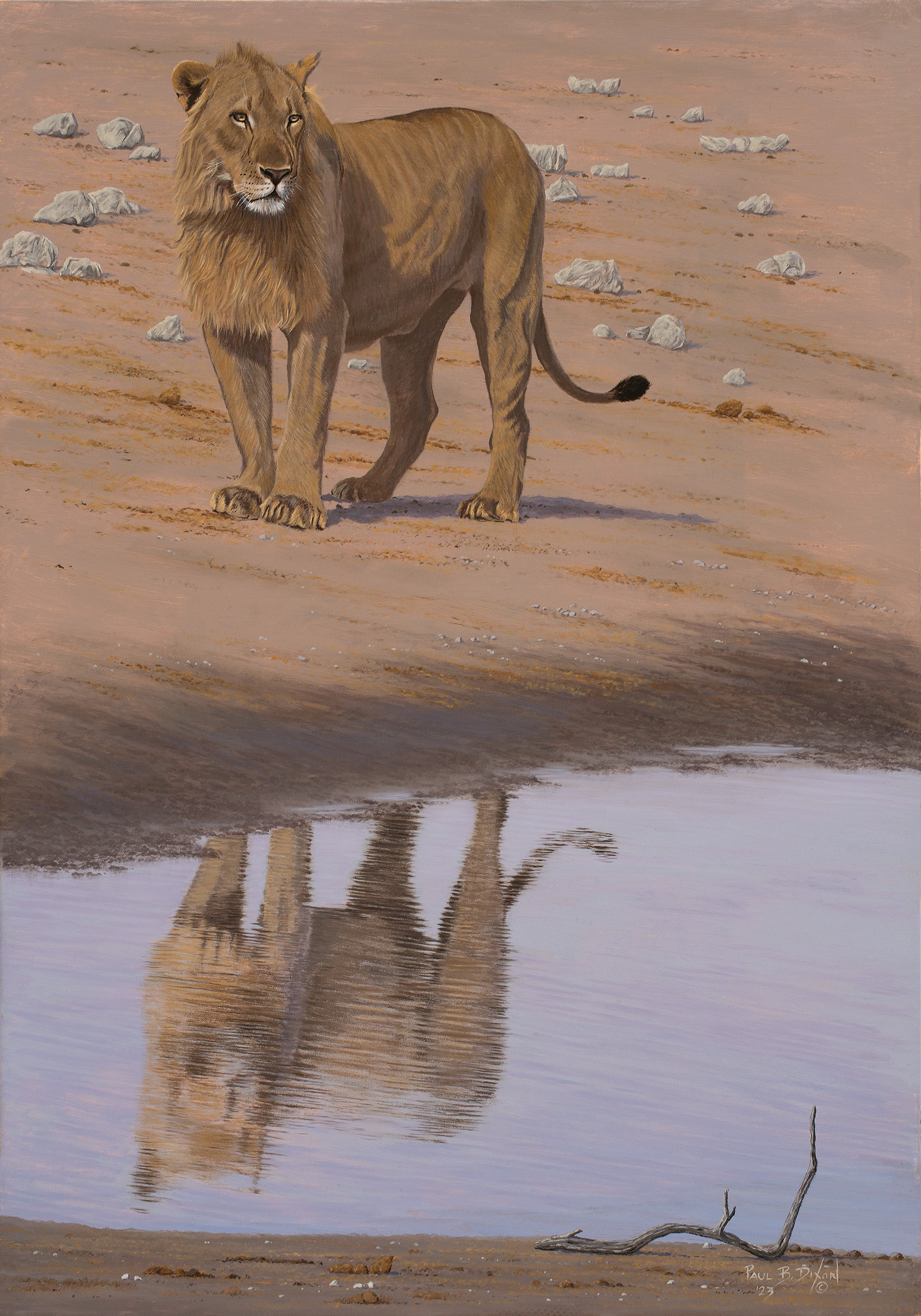 This is a limited edition archival print reproduction of ‘A Moment Of Reflection’ by wildlife artist Paul B. Dixon. The original painting was done in oils on linen in 2023.