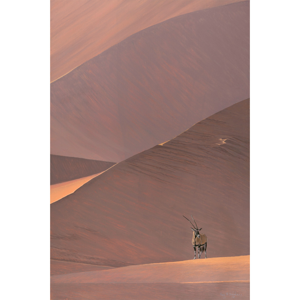 This is a limited edition archival print reproduction of ‘Sand, Silence & Shadows I’ by wildlife artist Paul B. Dixon. The original painting was done in oils on linen in 2021.